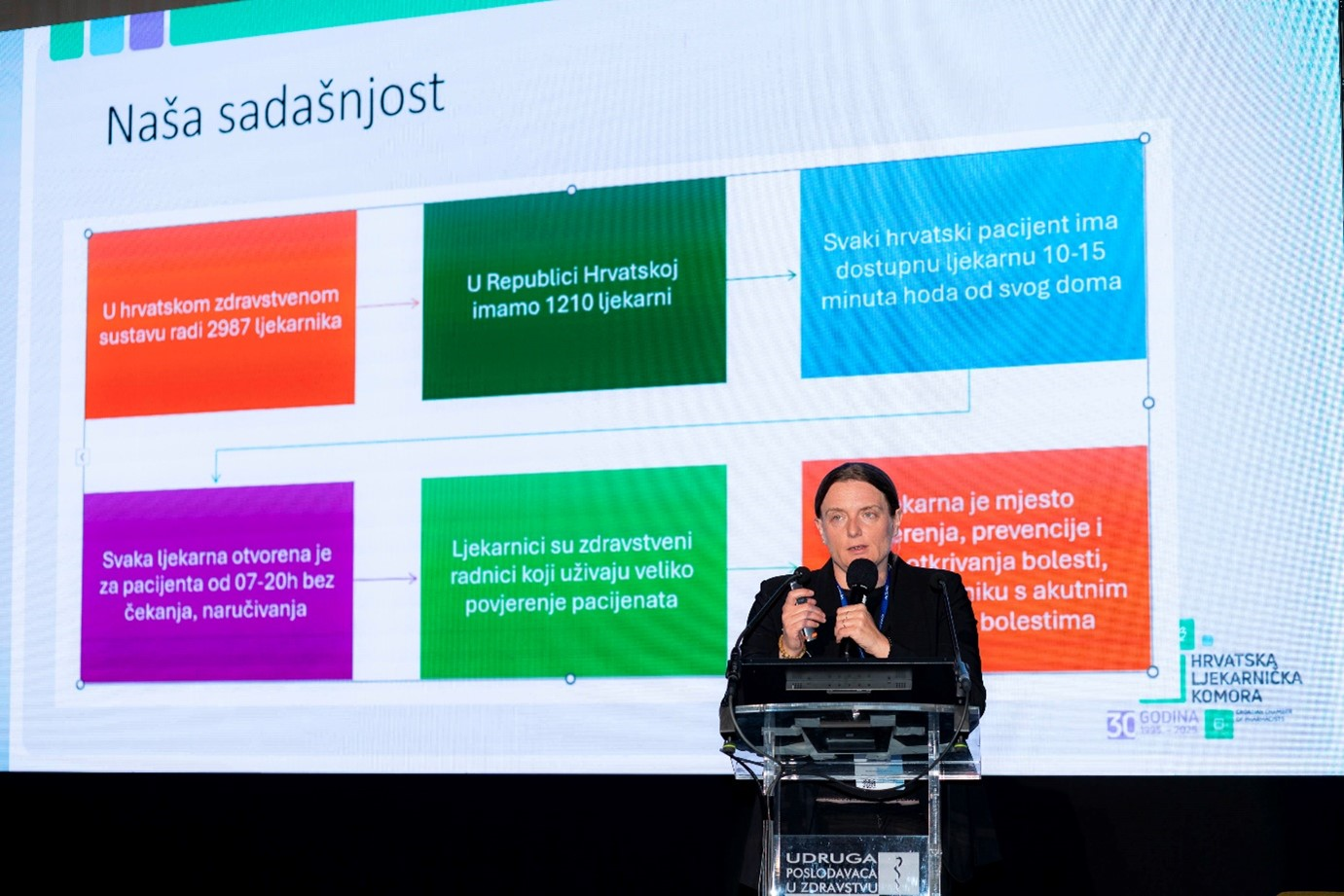Ana je u svom nadahnutom izlaganju istaknula kako će 2025. godina biti posvećena snažnoj afirmaciji ljekarništva kroz niz aktivnosti: edukativne i promotivne kampanje usmjerene prema građanima, stručni skupovi, suradnje sa zdravstvenim institucijama, ali i intenzivna prisutnost u javnom prostoru kroz medije. Glavni cilj jest približiti građanima sve što ljekarnici svakodnevno rade: od savjetovanja o lijekovima, podrške u samoliječenju, praćenja terapije, pa do aktivnog sudjelovanja u javnozdravstvenim projektima.