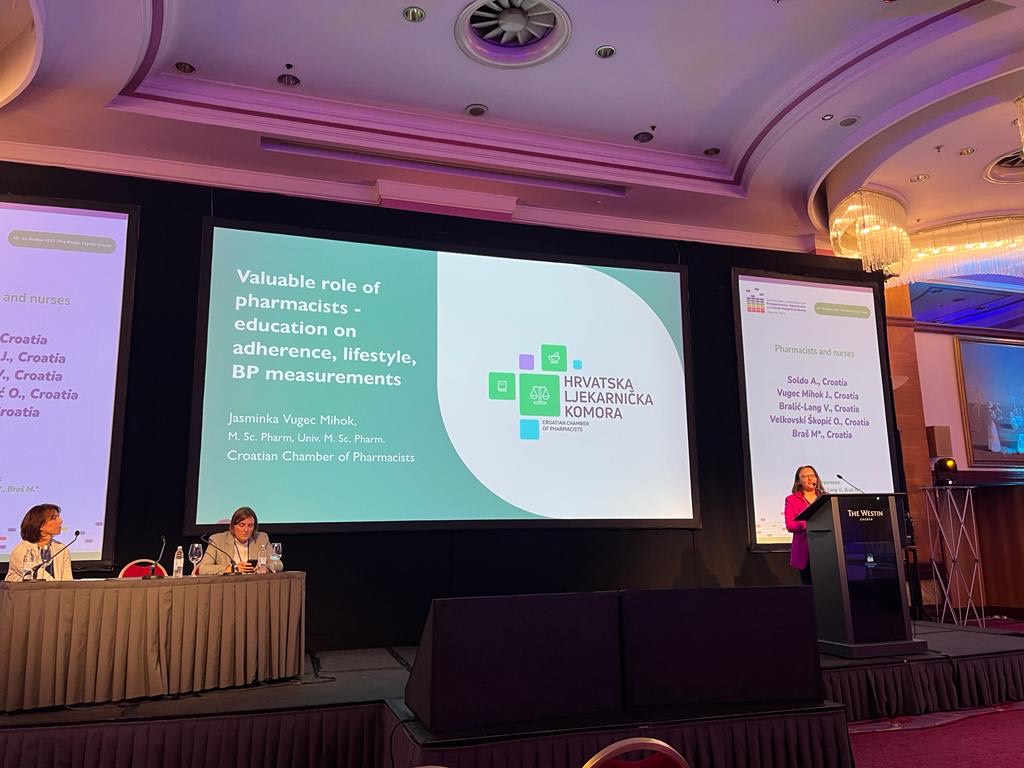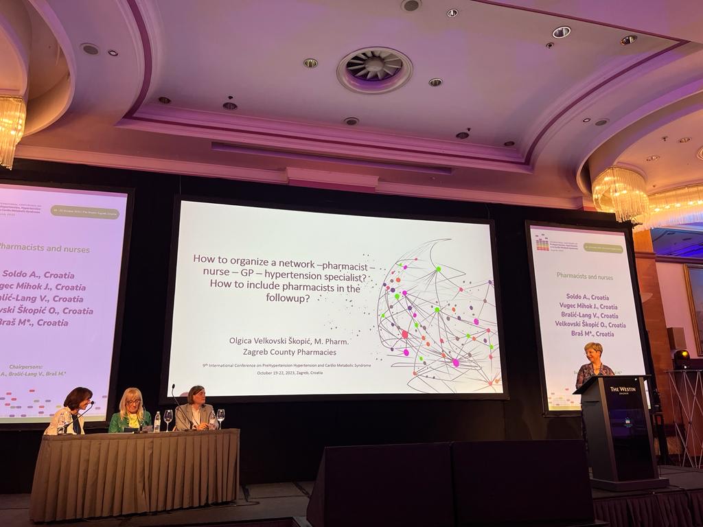 S ponosom smo predstavili na svjetskom kongresu prehipertenzije, hipertenzije i kardiološko-metaboličkog sindroma PreHyp2023 rezultate našeg projekta ”Ljekarnik kao važna karika u skrbi pacijenata s hipertenzijom”. Zajedno s Jasminkom Vugec, mag.pharm i potpredsjednicom HLJK, kolegicom Olgicom Velkovski, mag.pharm. i doc. dr.sc.Valerijom Bralić Lang specijalisticom obiteljske medicine, Hrvatska ljekarnička komora je predložila nove modele integrativne skrbi pacijenata s hipertenzijom te potrebu za formalnijim digitalnom komunikacijom svih zdravstvenih radnika koji skrbe o pacijentu. Hvala svima koji su se uključili i podržali projekt.